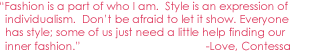 Contessa’s love for fashion began on the streets of Brooklyn, New York. Known to add a little flair to an otherwise simple outfit, she’s always had her own style. Styling her friends and family was just the beginning of her fashion journey.